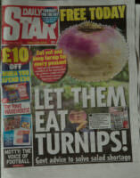 So tomatoes, cucumbers, peppers and salad crops are all in short supply right now in Britain’s supermarkets. Indeed Tesco, Aldi, Lidl and Morrisons are all rationing customers to a single item or bag of these valuable vegetables. Why? Allegedly because of adverse weather conditions in Spain and Morocco. Some unpatriotic people on seeing supermakets across Europe, including Ukraine, well stocked with all these delicacies as normal, suspect another reason, the impact of Brexit-induced red tape. Others suspect the cost of energy to heat UK greenhouses. But there is a Government-approved solution to the shortages. Turnips. Environment Secretary Therese Coffey used last week’s National Farmers Union conference in Birmingham to extol their virtues, allegedly under the guise of ‘eating local and seasonal’. It hasn’t gone down well in the popular press.