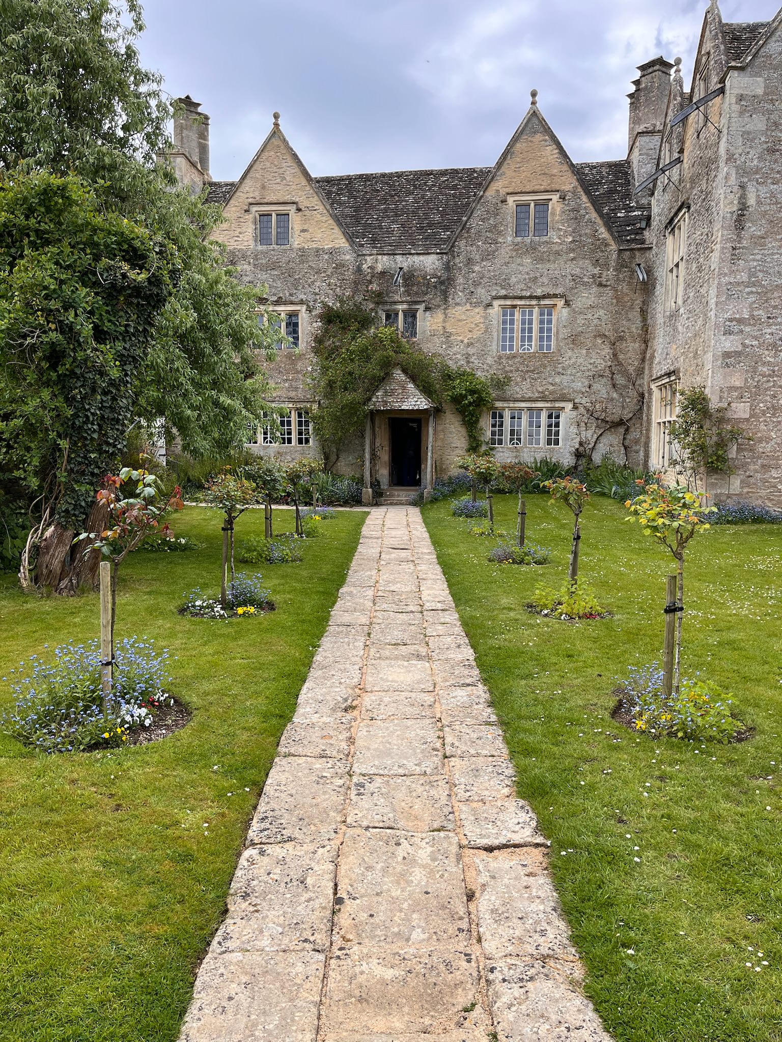 I have visited Kelmscott Manor, the country home of William Morris and family close to the Thames in rural west Oxfordshire, quite a few times over the past 40 odd years. It is always a delight, even on the summer boat trip up from Oxford in 2019 when it poured with rain the entire day. But the trip out for Lord Muck’s seventyth birthday was a particular delight, both for the company and for the time to explore the garden at leisure. In the past I have tended to focus on the house, its history, and Morrisian associations, including the many items in it so closely connected with them, portraits by Rossetti, settle, bed, tapestries and the sense of absorbing just how they lived in that collection of rooms, corridors, attics, nooks and crannies that go make up that most romantic of houses. I didn’t miss any of this on this visit either, but the weather and the season encouraged a more detailed exploration of the garden too. My previous blog a couple of months ago on Morris and plants and their uses both in dyeing and as inspiration for his many designs, aroused my interest in ‘Morris the gardener’. As Fiona MacCarthy put it despite not being a keen gardener himself he had ”…a deep appreciation of a garden’s possibilities”. So a visit to the Manor where there is a glorious setting and plenty of opportunity for practical application, was an opportunity to test this.